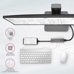 - 5-u-1: 2x USB-A, 2x USB-C, 1x HDMI