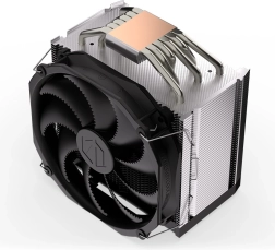 Gusto rebrasti hladnjak i asimetrični raspored sa šest heatpipe cijevi osiguravaju učinkovit odvod topline i bolju kompatibilnost s visokim RAM modulima.