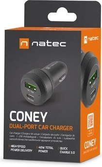 Kompaktni autopunjač NATEC Coney s priključcima USB-A i USB-C nudi brzo punjenje do 48 W, podršku za Power Delivery 3.0 (30 W) i Quick Charge 3.0 (18 W). Zahvaljujući inteligentnoj detekciji uređaja i naprednim zaštitama sigurno i učinkovito puni vaš telefon, tablet i drugu elektroniku tijekom vožnje.