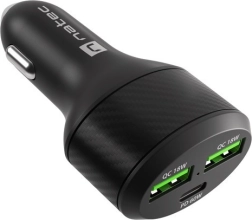 NATEC Coney je elegantan i izdržljiv auto punjač za 12/24 V utičnicu koji može napajati telefon, tablet i manji prijenosnik istodobno. S ukupnom snagom 84 W i trima priključcima – USB‑C PD 3.0 (60 W) i 2× USB‑A QC 3.0 – dobivate pouzdano i brzo punjenje tijekom svake vožnje.
