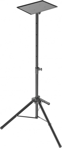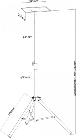 Čvrsta čelična konstrukcija s praškastim lakiranjem u crnoj boji jamči dugotrajnost i elegantan izgled. Prostrana platforma 36,5 × 26,6 cm odgovara većini uobičajenih projektora, a obrubni rub štiti opremu od neželjenog skliznuća.