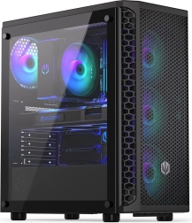 Endorfy Signum 300 ARGB je prozračno i stilski kućište za igrače i stvaratelje koji žele kompaktne dimenzije bez kompromisa. Mrežasta prednja stranica i četiri priložena Stratus 120 PWM ARGB ventilatora osiguravaju učinkovito hlađenje, dok bočna stranica od kaljenog stakla ističe komponente i osvjetljenje.