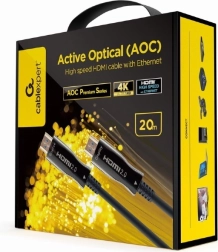 AOC HDMI kabel duljine 20 m koristi optičku tehnologiju za prijenos digitalnog signala, što omogućuje prijenos na veće udaljenosti bez rizika od EMI/RFI smetnji.