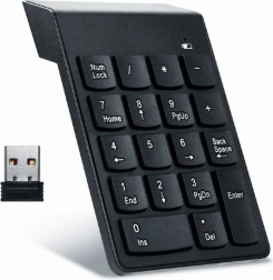 Nedostaje li vašem prijenosniku numerički blok? Ova bežična numerička tipkovnica Gembird praktično je rješenje za svakodnevni rad u Excelu, s tablicama i unosom podataka. Zahvaljujući bežičnoj tehnologiji 2,4 GHz i malom USB prijamniku lako je povezujete s bilo kojim računalom ili prijenosnikom s USB priključkom.