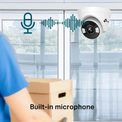 Integrirane AI funkcije prepoznaju ljude i vozila te upozoravaju na važne događaje. Dobit ćete obavijesti pri prelasku linije, ulasku u zonu, zasljepljivanju kamere ili uklanjanju/odlaganju objekta. Ugrađeni mikrofon snima zvuk u okolini do 4,5 m i upotpunjuje sliku važnim zvučnim kontekstom.