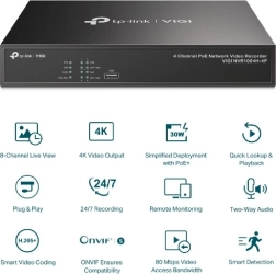 VIGI NVR1004H-4P je kompaktan NVR za 4 IP kamere koji kombinira visoku kvalitetu slike i jednostavno puštanje u pogon. Zahvaljujući 4K HDMI izlazu i dekodiranju do 16 MP dobit ćete oštar pregled iz više kutova. Integrirani PoE+ portovi napajaju i povezuju kamere jednim kabelom, što ubrzava instalaciju i smanjuje troškove.