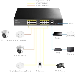 Prekidač sa 16 portova 10/100M PoE+ dizajniran je za učinkovito napajanje i prijenos podataka u mrežnim aplikacijama. S integriranim 2 uplink portovima 10/100/1000M i kombiniranim SFP portom pruža fleksibilnost za proširenje mreže.<7p>