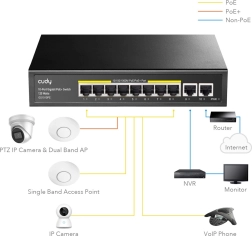 Cudy 10-portni Gigabitni PoE+ Preklopnik je dizajniran za učinkovito upravljanje i distribuciju podatkovnog prometa u mreži. Nudi: