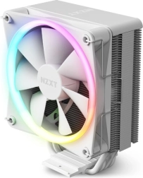 NZXT T120 RGB White spaja učinkovito hlađenje s čistim dizajnom. Aluminijski pokrov diskretno skriva bakrene toplovodne cijevi, a veliki 120 mm ventilator s adresabilnim RGB prstenom osigurava visok protok zraka i statički tlak. Upravljanje svjetlosnim efektima lako je putem NZXT CAM.