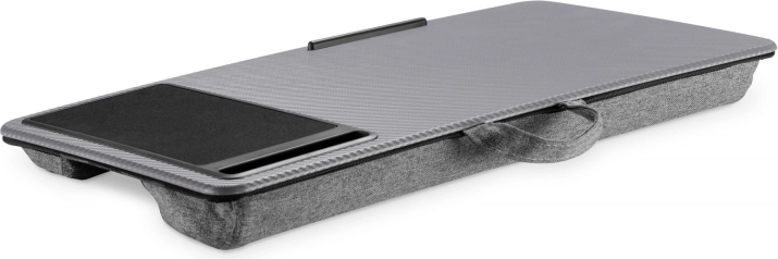 Praktična podloga za krilo omogućuje vam udoban rad odakle god poželite – s kauča, iz kreveta ili na putu. Nudi stabilnu površinu za prijenosno računalo do 17", integriranu podlogu za miš, držač za pametni telefon i mekano podstavljenje za maksimalnu udobnost. Zahvaljujući praktičnoj ručki lako je prenosiva, dok graničnik na donjoj strani sprječava klizanje prijenosnika čak i pri nagibu.
