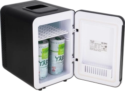 Unutarnji prostor zapremine 4 litre s policom i košaricom u vratima olakšava preglednu organizaciju manjih boca, limenki i čašica. Robusna ručka i kompaktne dimenzije osiguravaju jednostavno rukovanje, dok napajanje 230 V/12 V omogućuje upotrebu hladnjaka kod kuće i u automobilu. U pakiranju se nalaze oba kabela za napajanje, a na stražnjoj strani nalazi se i prekidač HOT/COLD.