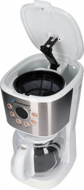 Stilizirani aparat za filter kavu Blaupunkt CMD802WH s kapacitetom 1,5 l i snagom 900 W odjednom priprema do 12–14 šalica kave. Nudi timer za automatsko pokretanje, funkciju održavanja temperature, izbor jačine arome (Strength) te mogućnost uporabe papirnatih filtera 1×4 ili trajnog najlonskog filtera. Elegantno bijelo izvedenje izvrsno pristaje svakoj kuhinji ili uredu.