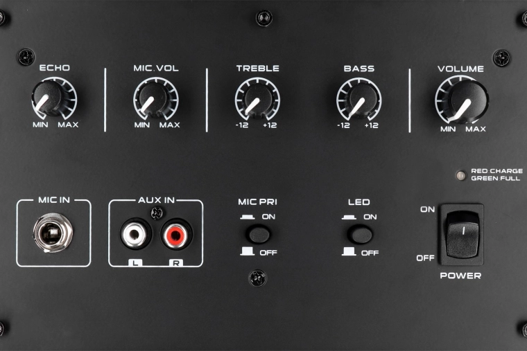 Na upravljačkoj ploči nalaze se odvojene regulacije basova i visokih te ekvilajzer s načinima Normal, Rock, Pop, Classic, Jazz i News. Funkcija TWS (True Wireless Stereo) omogućuje povezivanje dvaju MB06.2 za širu zvučnu scenu i pravi stereo efekt. Karaoke s priloženim žičanim mikrofonom razveselit će svaku zabavu, dok LED svjetla stvaraju dojmljivu klupsku atmosferu.