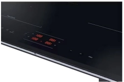 Samsung indukcijska ploča za kuhanje dizajnirana je za moderne kuhinje s fleksibilnom zonom Flex Zone, koja omogućuje istodobno kuhanje u različitom posuđu zahvaljujući širokom pravokutnom prostoru. Funkcija Wi‑Fi povezivosti pruža praktičnost i omogućuje praćenje ploče s bilo kojeg mjesta putem aplikacije SmartThings. Ploča je dodatno opremljena funkcijom automatskog povezivanja s napom, koja se uključuje pri korištenju ploče.