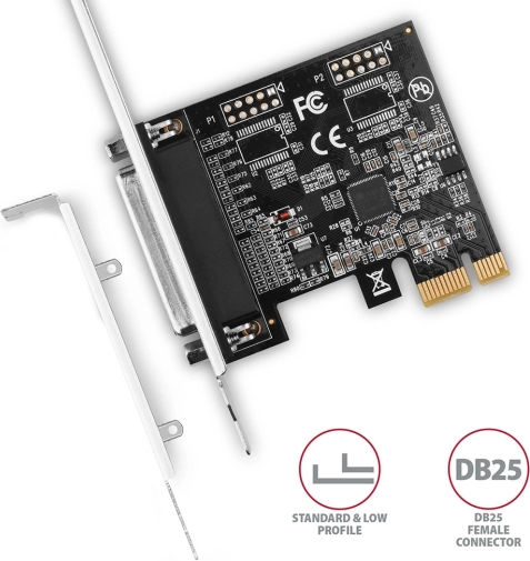 Ova PCI-Express kartica dodaje vašem PC-u pouzdan paralelni priključak za povezivanje pisača, plotera, programatora EPROM-a, hardverskih ključeva i druge industrijske opreme. Za besprijekornu kompatibilnost brine provjereni čipset ASIX AX99100, koji podržava načine rada SPP/BYTE/ECP i brzinu prijenosa do 1,5 MB/s.