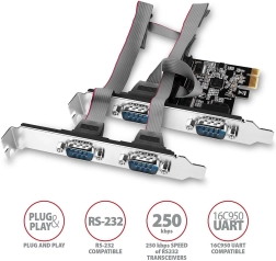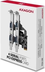 PCI-Express kartica AXAGON PCEA-S4N dodaje vašem PC-u četiri serijska RS-232 porta s DB9 konektorima. Zahvaljujući provjerenom chipsetu ASIX AX99100 jamči stabilnu komunikaciju, visoku propusnost i potpunu kompatibilnost s industrijskim uređajima, blagajničkim sustavima i CNC strojevima. Ugradnja je jednostavna zahvaljujući podršci Plug and Play i priloženim pokrovnim pločicama za standardna i niskoprofilna kućišta.