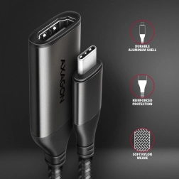 Upoznajte moderni AXAGON adapter koji će promijeniti vašu perspektivu povezivanja zaslona. Jednostavan i pouzdan, ovaj adapter pruža kvalitetu slike do 4K/60Hz Ultra HD. Podržava popularne gaming rezolucije WQHD i FullHD na visokim frekvencijama za maksimalan užitak u igri. Adapter podržava HDR za širi spektar boja i kontraste, što omogućuje potpuno realistične vizualne doživljaje.