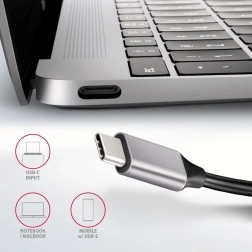 Ovaj hub nudi tri USB porta sa standardnim USB-A priključcima. Omogućuje stalnu podršku za više vanjskih diskova. Zahvaljujući brzom sučelju USB 3.2 Gen 1, prijenos podataka podržan je brzinama do 5 Gb/s. Hub također nudi funkciju punjenja telefona i tableta strujom do 1.5 A / 5 V.
