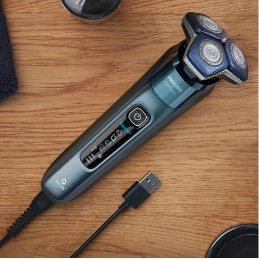 Praktični LED zaslon prikazuje stanje baterije i potrebu za čišćenjem. Moderna konstrukcija s mogućnošću mokrog i suhog brijanja jamči univerzalnu uporabu pod tušem ili na umivaoniku. U paketu je postolje/rješenje za čišćenje te putna torbica za jednostavno održavanje i sigurno spremanje.