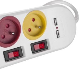 Razdjelnik dodatno sadrži dva USB priključka koji omogućuju punjenje pametnih telefona, tableta, fotoaparata i drugih uređaja bez potrebe za dodatnim adapterima.