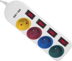 Ovaj produžni razdjelnik nudi praktično rješenje za moderne domove koji zahtijevaju spajanje više uređaja. Zahvaljujući četirima utičnicama u različitim bojama i pojedinačnim prekidačima za svaku utičnicu, lako je organizirati i kontrolirati dovod energije.