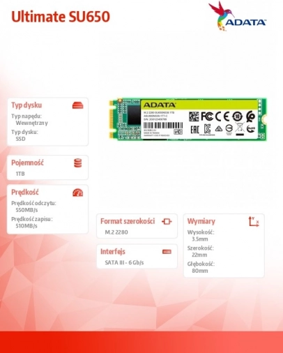 SSD ADATA Ultimate SU650 1 TB M.2 2280 SATA (3D NAND TLC)