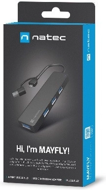 Proširite mogućnosti svog prijenosnika ili PC‑a uz čvorište NATEC Mayfly. Nudi četiri brza USB‑A 3.0 porta za povezivanje periferija, diskova i čitača, a pritom zadržava maksimalnu mobilnost. Zahvaljujući priloženom adapteru priključit ćete ga preko USB‑C ili klasičnog USB‑A, pa je izvrsno rješenje za širok raspon uređaja.
