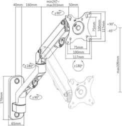 Uživajte u fleksibilnom i ergonomskom pozicioniranju vašeg zaslona zahvaljujući ovom zidnom nosaču. Nosač je izdržljiv s podesivom plinskom oprugom i podržava monitore težine od 2 do 7 kg. Omogućuje lako ergonomsko pozicioniranje za smanjenje opterećenja.