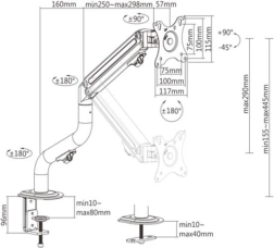 Podesivo monitorno arm postolje nudi ergonomsko rješenje za radnu površinu, omogućujući udobno podešavanje kuta monitora. S nosivošću do 8 kg, prikladno je za većinu monitora od 17 do 32 inča.