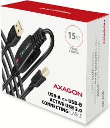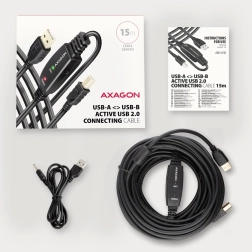 Aktivni kabel USB AXAGON ADR-215B duljine 15 m omogućuje povezivanje uređaja kao što su pisači, skeneri ili plotteri s računalom na veću udaljenost. Zahvaljujući integriranom pojačivaču signala, osigurana je stabilna komunikacija i na većim udaljenostima. Kabel se može dodatno produžiti pomoću produžetka. Značajke: