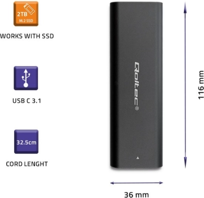 Vanjsko aluminijsko kućište za M.2 SATA SSD (NGFF) s USB‑C, Qoltec