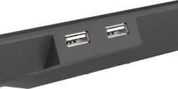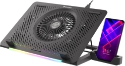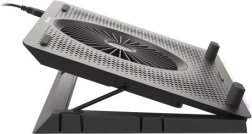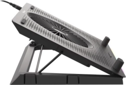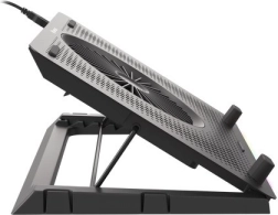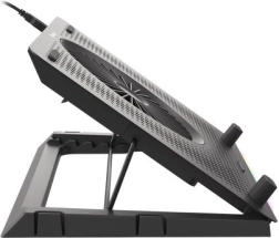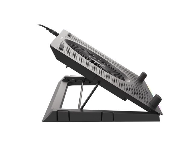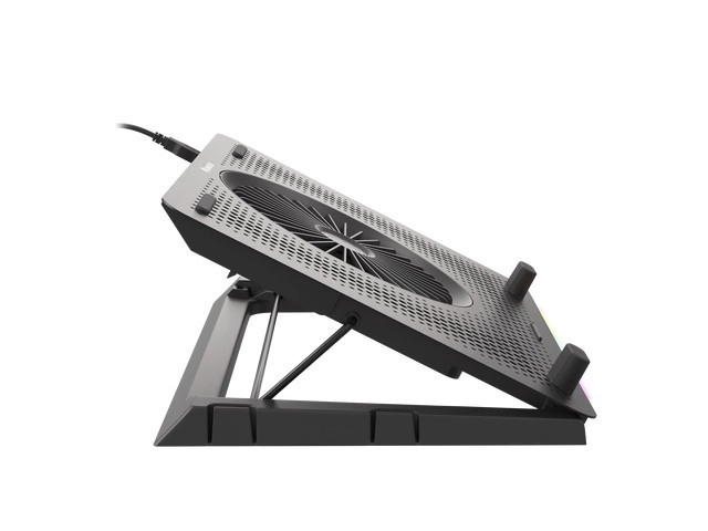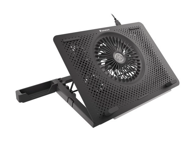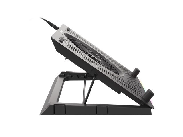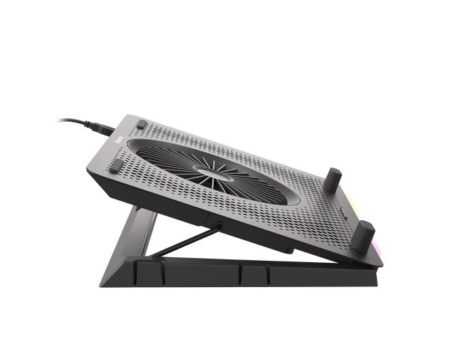 Rashladni sustav čine 1 veliki ventilator za dovod hladnog zraka i 4 manja ventilatora za učinkovito odvođenje topline. Zahvaljujući dvostupanjskoj regulaciji okretaja lako ćete prilagoditi snagu trenutnom radu ili igri. 5 razina nagiba poboljšava ergonomiju i udobnost, dok gumeni graničnici i nožice drže prijenosnik sigurno na mjestu.
