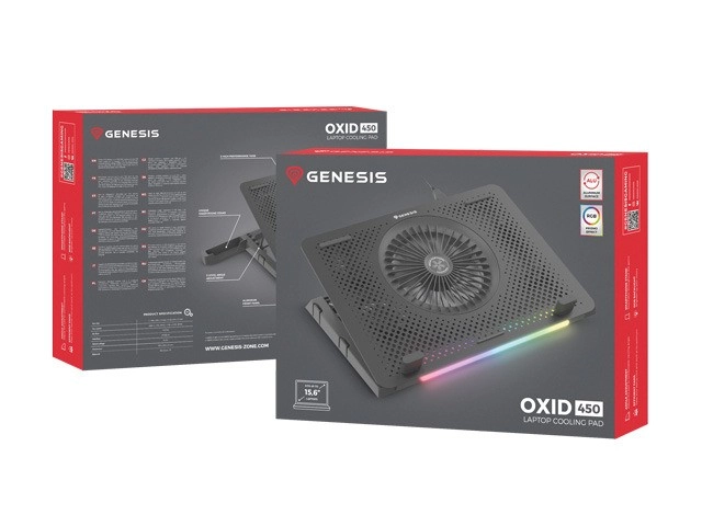 Održavajte svoj prijenosnik na idealnoj temperaturi čak i tijekom zahtjevnog igranja. Hladna podloga GENESIS Oxid 450 RGB kombinira snažan protok zraka, atraktivno RGB osvjetljenje i ergonomiju za udobnu uporabu. Perforirani aluminijski panel aktivno pomaže pri odvođenju topline i pridonosi nižim temperaturama i tišem radu.