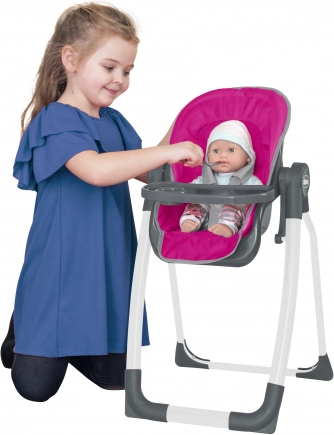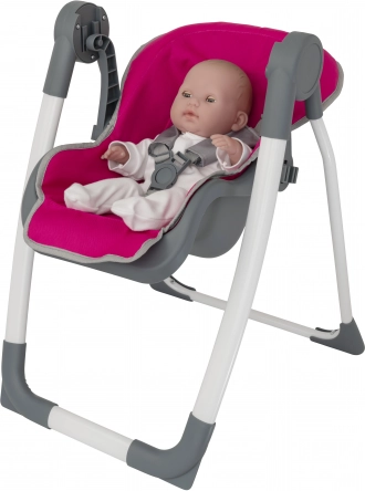 Chicco stolica za lutke 3u1 je multifunkcionalan dodatak koji služi kao ljuljačka, autosjedalica i klasična stolica za lutke do veličine 43 cm.