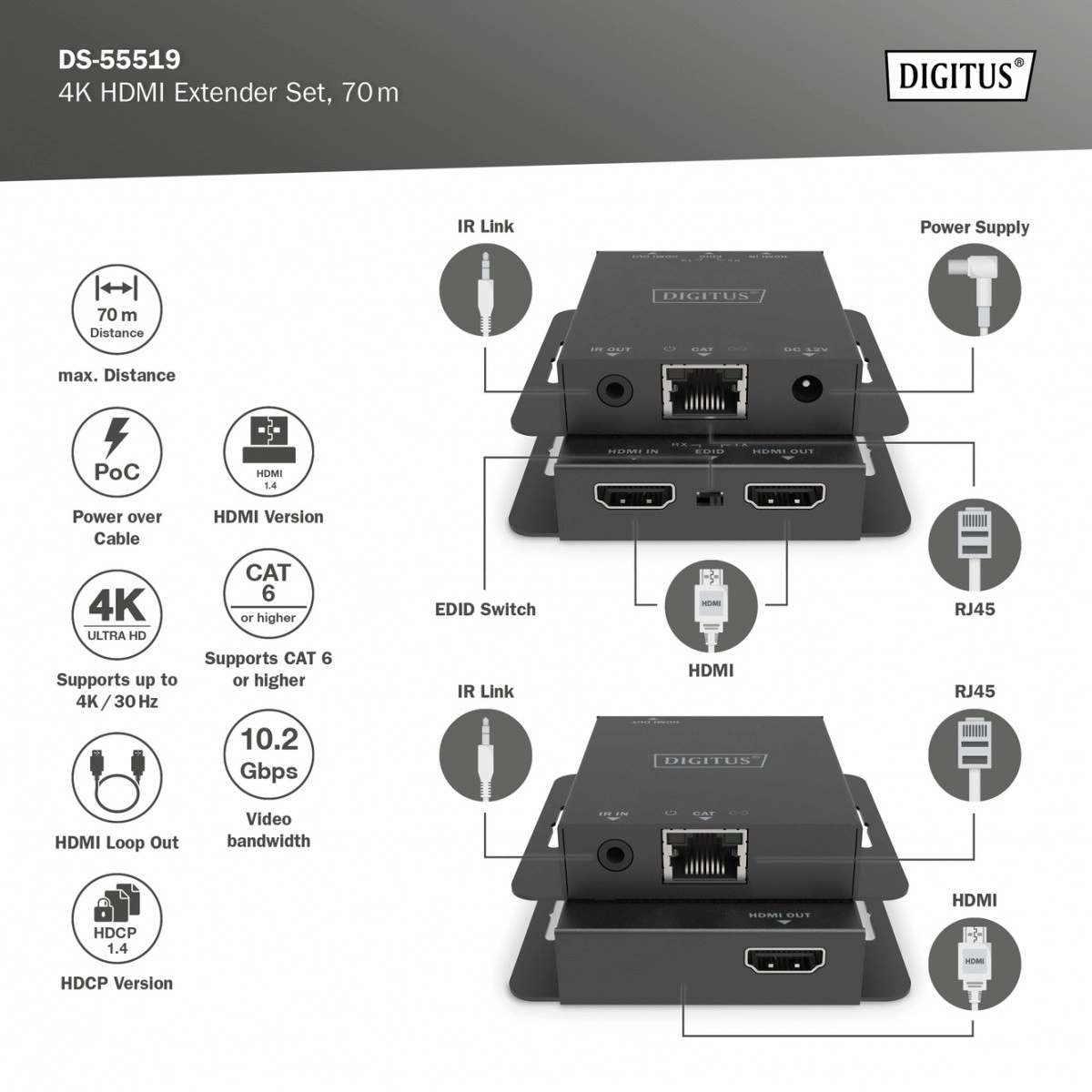 Omogućuje proširenje HDMI signala do udaljenosti od 70 m uz podršku rezolucije do 4K.