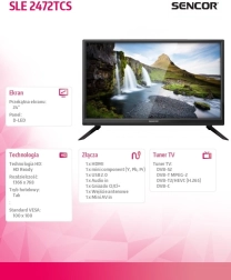 Tražite pouzdan televizor za manju prostoriju? Ovaj 24″ model nudi uravnoteženu sliku u HD Ready rezoluciji i pokriva sve glavne vrste emitiranja – od zemaljskog preko kabela do satelita. Zahvaljujući kompaktnim dimenzijama uklopit će se i ondje gdje je malo prostora.