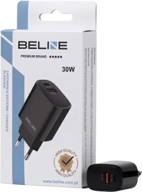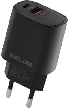 Mrežni punjač 30W GaN s USB-C i USB-A Beline – crna