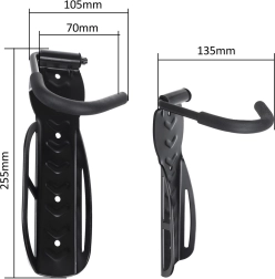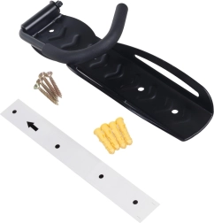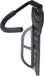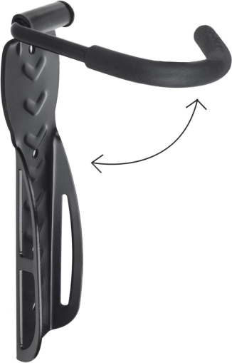 Montaža je jednostavna – nosač se pričvršćuje na zid pomoću priloženih tipli i vijaka. Gumirana površina kuke pouzdano štiti obruč od oštećenja, zbog čega je ovaj nosač idealan za kućanstva i garaže.