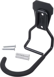 Ugradnja je brza i intuitivna: nosač pričvrstite na zid pomoću priloženog montažnog materijala, a bicikl jednostavno objesite na kuku. Idealno za garažu, radionicu, skladište i male stanove.