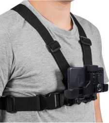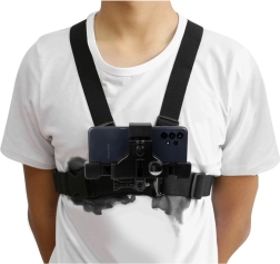 Pojas je izrađen od kvalitetne plastike i elastične gume za visoku izdržljivost i udobnost. Omogućuje montažu pametnog telefona, fotoaparata i GoPro u sredinu prsa za stabilne snimke iz perspektive prve osobe. Ugrađeno kontrolno zrcalce pomaže brzo namjestiti pravilan kadar.