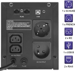 Tehnologija AVR (Automatic Voltage Regulation) izravnava kolebanja napona i štedi bateriju, dok funkcija Cold Start omogućuje pokretanje priključenih uređaja i bez prisutnosti mreže. Tu su i zaštita od preopterećenja i kratkog spoja te USB priključak za povezivanje s PC-jem uz softver za nadzor i upravljanje UPS-om.