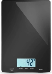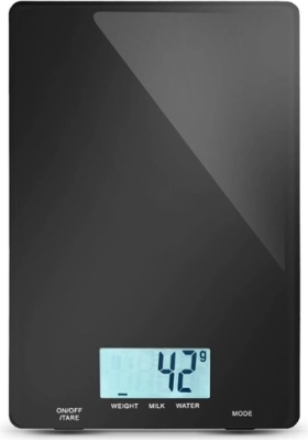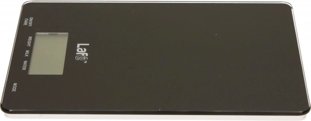 Ova tanka i stilska digitalna vaga Lafe dizajnirana je za precizno mjerenje sastojaka s brzim očitavanjem na velikom pozadinski osvijetljenom zaslonu. Dodirne tipke omogućuju udobno upravljanje, funkcija tara omogućuje postupno vaganje sastojaka u jednoj posudi, a posebni načini za vodu i mlijeko olakšavaju pripremu recepata.