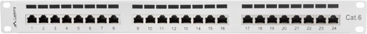 Patch panel za brze računalne mreže za završavanje i organizaciju strukturiranog kabliranja u serverskim ormarima (rack). Omogućuje jednostavno i učinkovito upravljanje kabelima zahvaljujući 24 oklopljena RJ-45 porta kategorije 6.