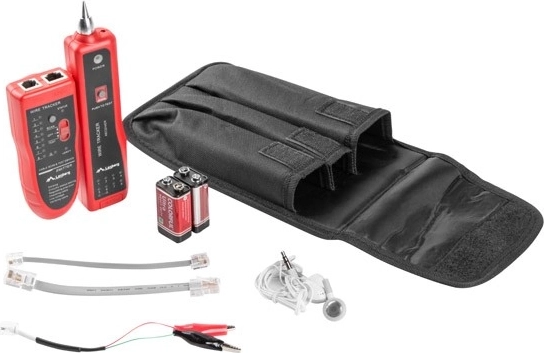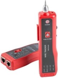 Tester uključuje odašiljač i prijamnik koji omogućuju testiranje kontinuiteta kabela i praćenje vodiča s ključnim RJ45 priključcima.