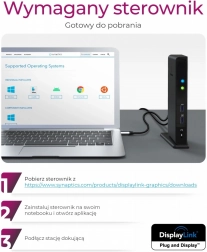 Ovaj adapter kompatibilan je s operativnim sustavima Windows i Mac, što ga čini idealnim pratiteljem za poslovne korisnike i multimedijske entuzijaste. Podržava također Android i Ubuntu. Za najnovija ažuriranja upravljačkih programa posjetite DisplayLink.