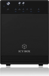 Integrirani ventilator održava diskove na optimalnoj temperaturi, dok LED lampice jasno prikazuju napajanje i aktivnost pojedinih diskova.