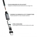 Izdržljiv najlonski oplet štiti kabel od savijanja i habanja, a duljina od 2 metra donosi praktičnost kod kuće, u uredu i u automobilu. Kompatibilnost s Quick Charge 4.0/3.0/2.0 i tehnologijom AiPower osigurava široku primjenu na uređajima s USB‑C priključkom.