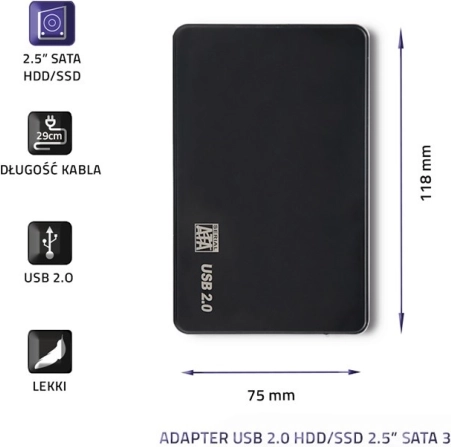 Vanjsko kućište za tvrdi disk za 2.5'' HDD/SSD diskove pruža idealno rješenje za siguran prijenos vaših podataka. Uživajte u brzom i jednostavnom uređivanju datoteka zahvaljujući visokoj kompatibilnosti sa sustavima Windows i Mac.
