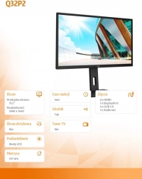 Monitor Q32P2 dizajniran je kako bi pružio izvrsnu kvalitetu slike i fleksibilnost koju očekujete od modernog uređaja.
