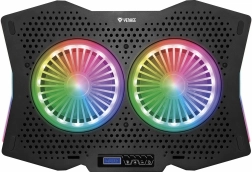 Ova univerzalna hladnjaka podloga dizajnirana je za učinkovito odvođenje topline i tihi rad. Čvrsta metalna perforirana mrežica poboljšava protok zraka i štiti uređaj, dok RGB osvjetljenje vašem radnom stolu daje stil. Integrirana LCD ploča omogućuje brzo podešavanje brzine ventilatora i svjetlosnih efekata.